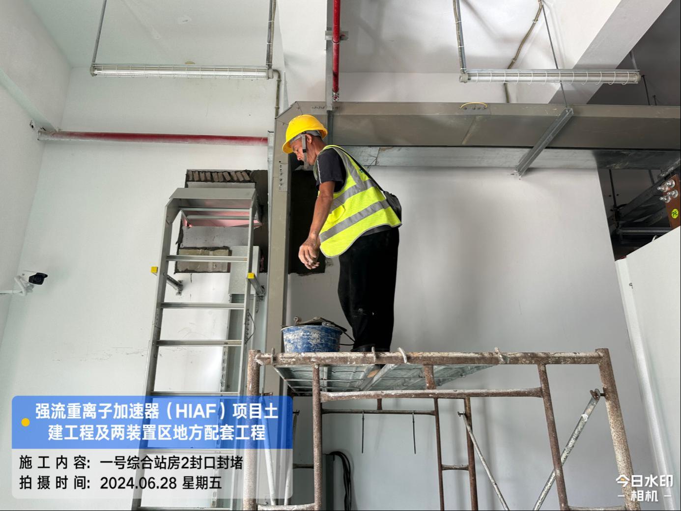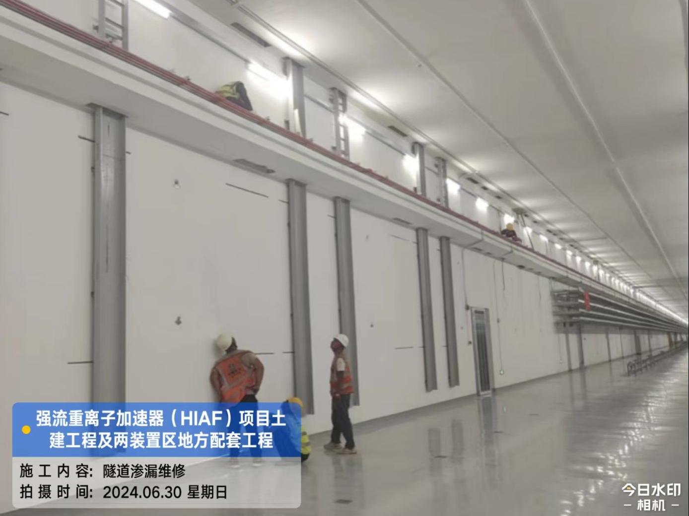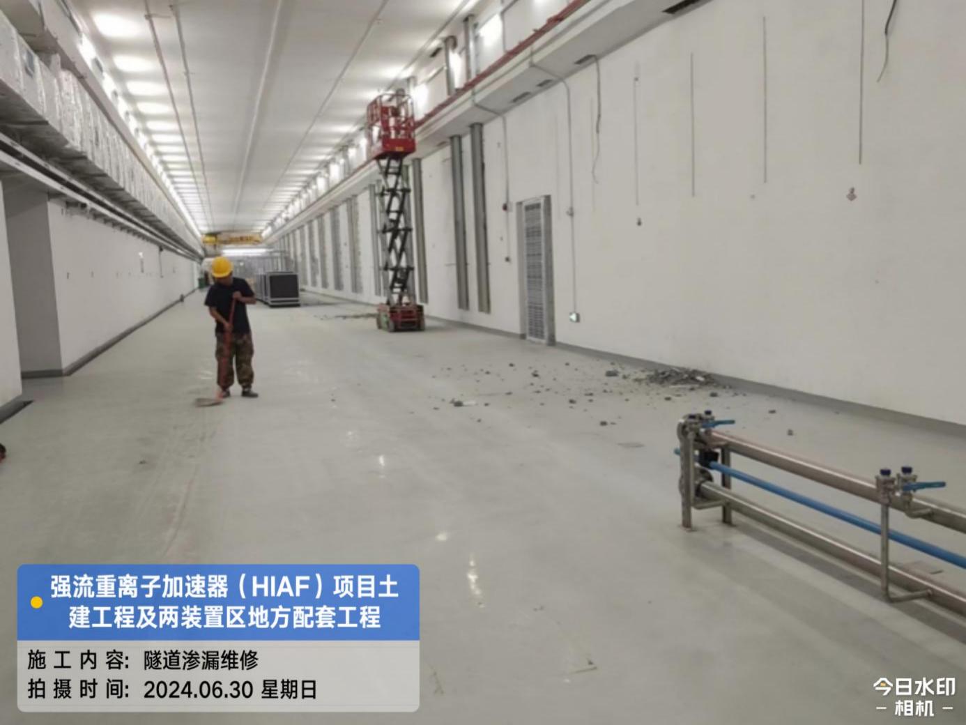 一、加速器隧道:隧道新增渗漏处理完成50%,涂料恢复完成50%。直线隧道13号楼梯电梯门不锈钢包边完成80%,门边瓷砖踢脚铺贴完成80%。H隧道4/8号楼梯电梯门不锈钢包边完成80%,门边瓷砖踢脚铺贴完成80%。高能综合终端2/3号楼梯电梯门不锈钢包边完成80%,门边瓷砖踢脚铺贴完成80%。