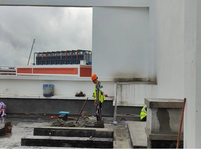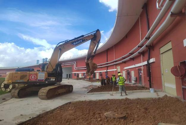 二、HIAF区其它单体:一号综合站房屋面保温层铺装完成50%。二号测试大厅屋面外墙油漆完成100%。室外一号测试大厅外环新增悬臂式挡土墙基础注浆完成;一号测试大厅内环道路路缘石安装完成;综合测试大厅道路边排水沟浇筑完成100%;离子源大厅出入口台阶浇筑完成90%;运行楼周边绿化修坡造型平整完成50%。