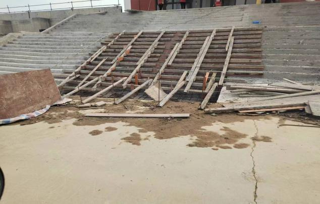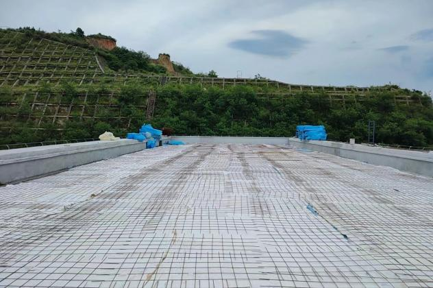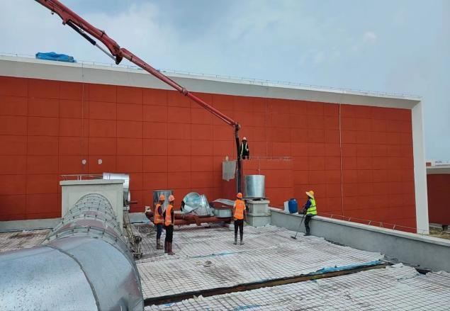 二、HIAF区其它单体:一号综合站房(1#)屋面防水保护层浇筑完成,屋面空调机房找平层完成,出屋面楼梯间反坎浇筑完成,室内空压机房、气体瓶灭火间地坪混凝土浇筑完成。室外一号测试大厅外环新增挡土墙基础注浆完成;一号测试大厅内环花池种植土回填平整完成;离子源大厅出入口台阶浇筑完成90%。
