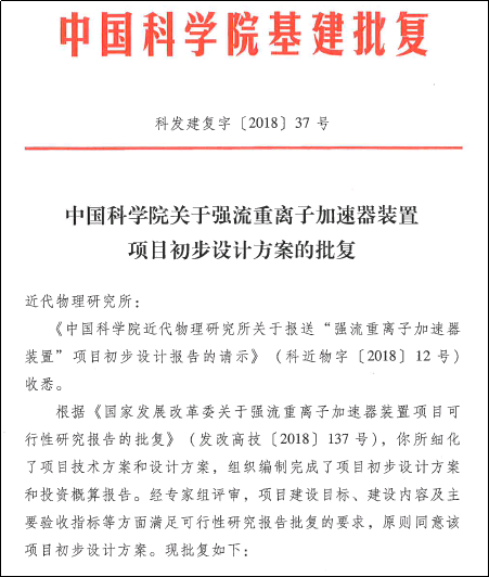 HIAF项目初步设计方案批文