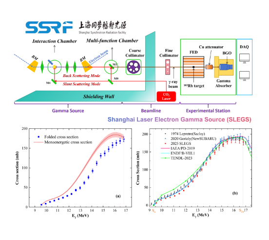 图2 :SSRF SLEGS线站光核反应实验布局、103Rh(γ,n)反应实验截面值与评价库的比较