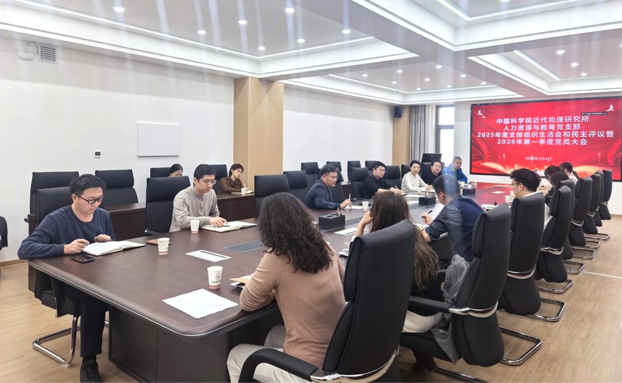 34日,近代物理所人力资源与教育党支部召开2025年组织生活会暨2026年第一季度党员大会。党委书记、副所长胡正国作为联系支部的党委委员到会指导,党支部书记郭轶瑞主持会议,全体党员同志参会。